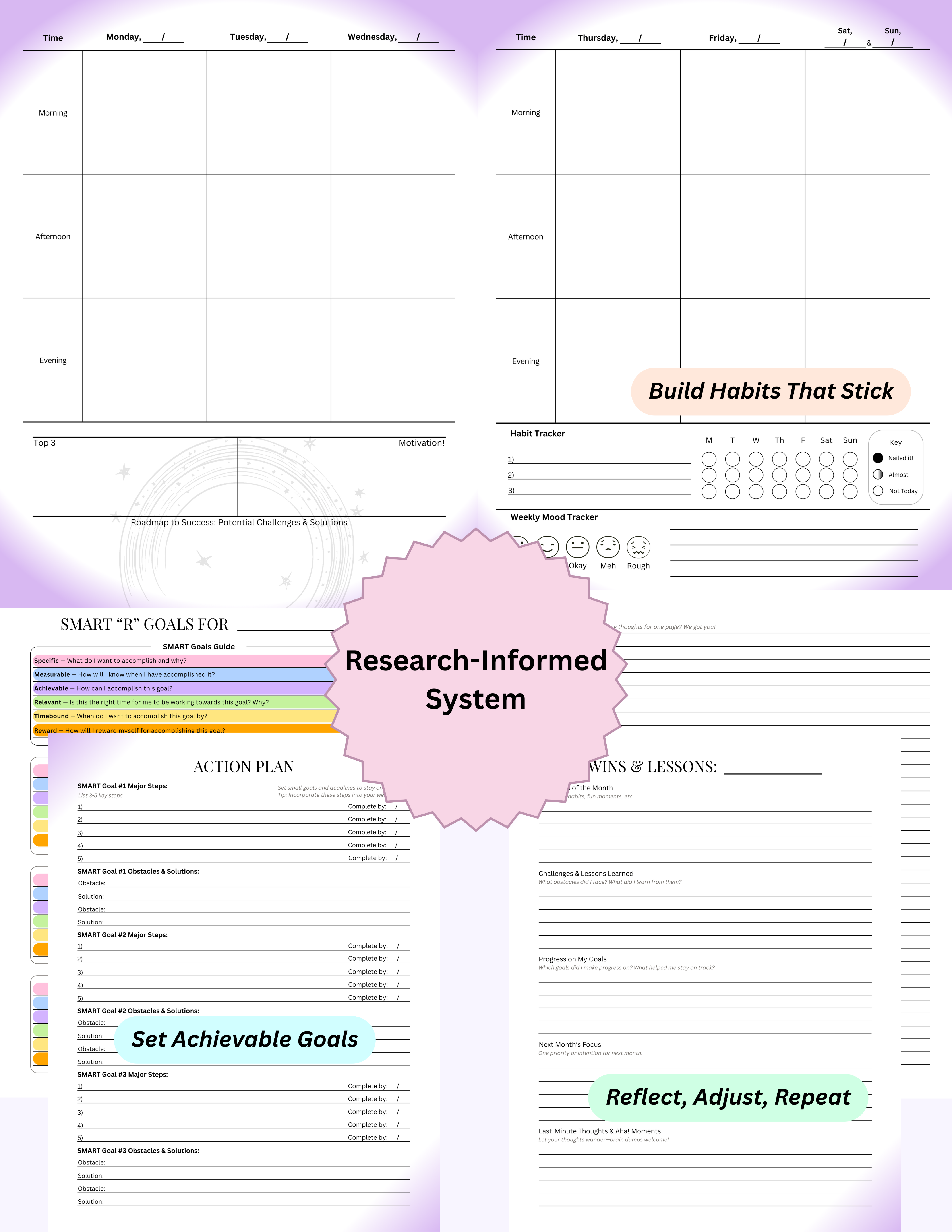 Backed by feedback from adults with ADHD and the professionals who support them, it's more than a pretty cover and collection of templates — it's packed with research-informed structure that makes planning feel clear, doable, and repeatable.